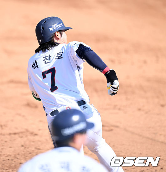[OSEN=홍지수 기자] 두산 베어스가 키움 히어로즈와 시범경기에서 완승을 거뒀다. 두산은 13일 이천에서 열린 키움과 시범경기에서 8-1로 이겼다. 이날 박찬호가 동점 적시타를