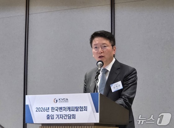김학균 벤처캐피탈협회 회장이 서울 강남구 웨스틴 서울 파르나스 호텔에서 열린 기자간담회에서 발언하고 있다. 2026.3.13 뉴스1 News1 김민석 기자…