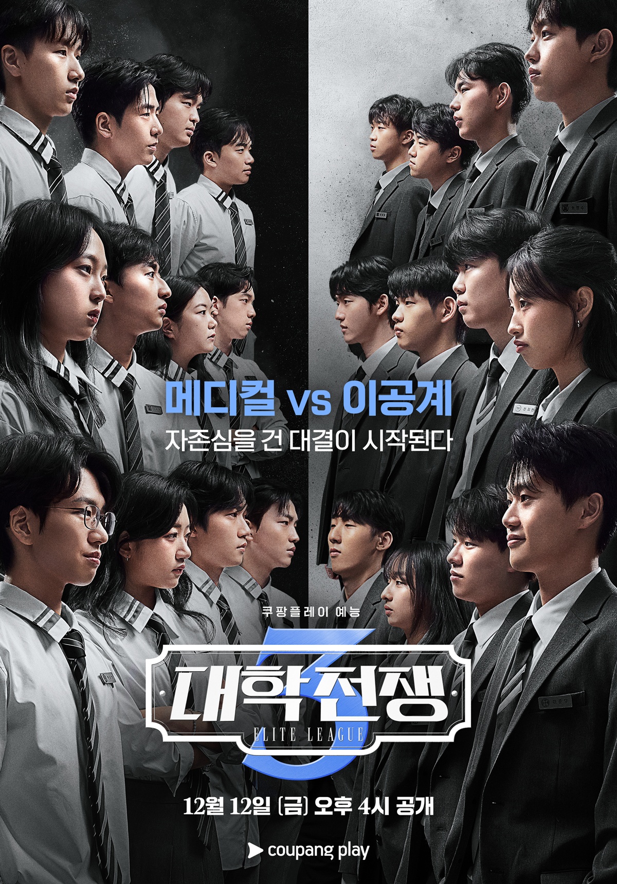 쿠팡플레이 예능 '대학전쟁' 시즌 3가 스페셜 포스와 함께 관전 포인트를 공개하며 손에 땀을 쥐게 하는 ‘레전드 of 레전드’ 두뇌 싸움을 예고했다. 쿠팡플레이 예능 '대학전쟁'