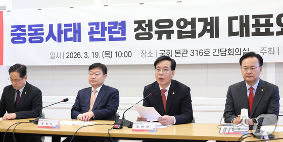 송언석 국민의힘 원내대표가 19일 서울 여의도 국회에서 열린 중동사태 관련 정유업계 대표와의 정책간담회에서 인사말을 하고 있다. 2026.3.19 뉴스1 신…