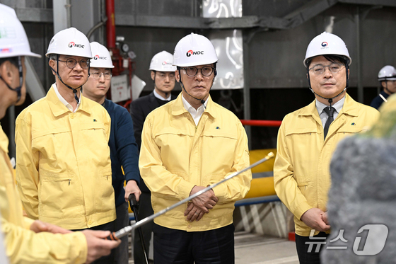 김민석 국무총리가 중동 사태로 석유 가격 변동성이 커지고 있는 11일 경기도 구리시 한국석유공사 구리지사를 방문해 손주석 한국석유공사 사장과 지하저장공동에 대한 설명을 …