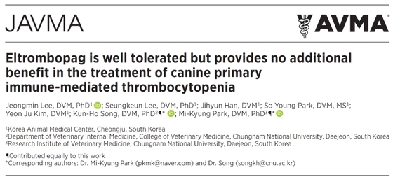 고려동물메디컬센터 연구팀은 경구용 혈소판생성호르몬 수용체 작용제인 '엘트롬보팍Eltrombopag'의 효과와 안전성을 평가한 연구를 미국수의학협회지…