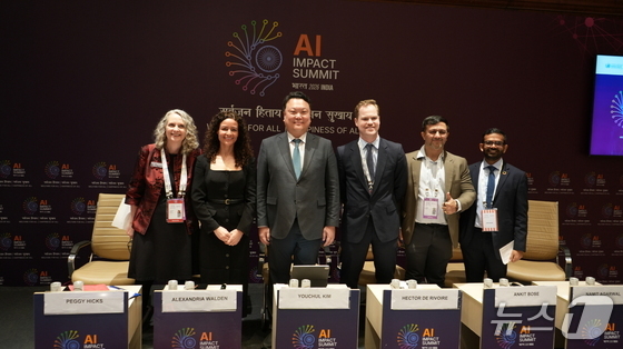 20일현지시간 인도 뉴델리 바라트 만다팜에서 열린 유네스코와 유엔 인권최고대표사무소 공동 주관 행사에 참가한 관계자들이 기념 사진 촬영을 하고 있다.&…