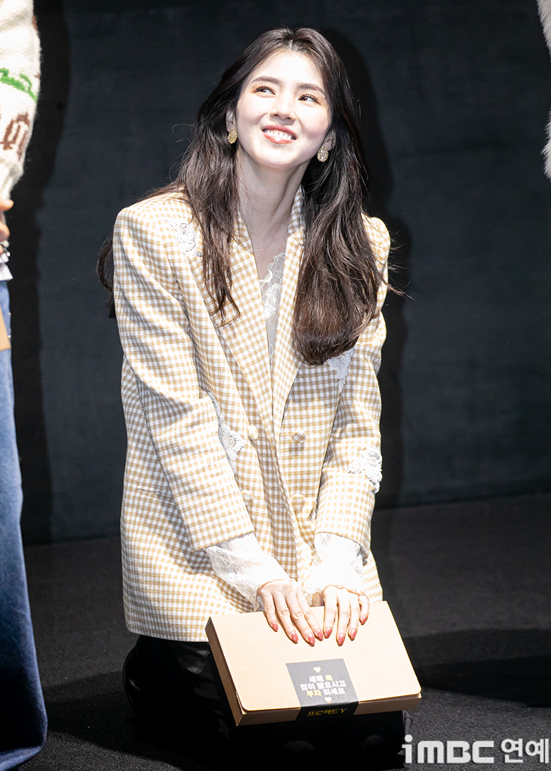 한소희가 영화 흥행을 기원하는 무릎을 꿇었다. 배우 한소희가 24일 오후 서울 강남구 메가박스 코엑스점에서 열린 영화 ‘프로젝트 Y’ 개봉주 무대인사에 참석해 관객들과 소통했다.