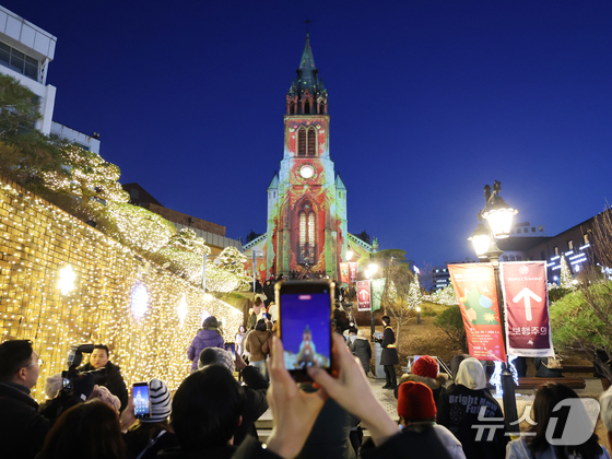 크리스마스 이브인 24일 서울 중구 명동성당 외벽에 아기예수의 탄생을 축하하는 미디어파시드가 펼쳐지고 있다. 2025.12.24/뉴스1 News1 황기선 기…