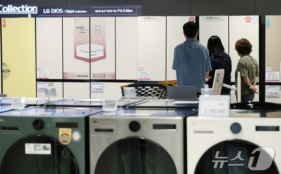 서울의 한 마트 가전매장을 찾은 시민들이 냉장고를 살펴보고 있다. 뉴스1 장수영 기자대형 가전 구독렌탈 서비스 사업자들이 월 이용료…