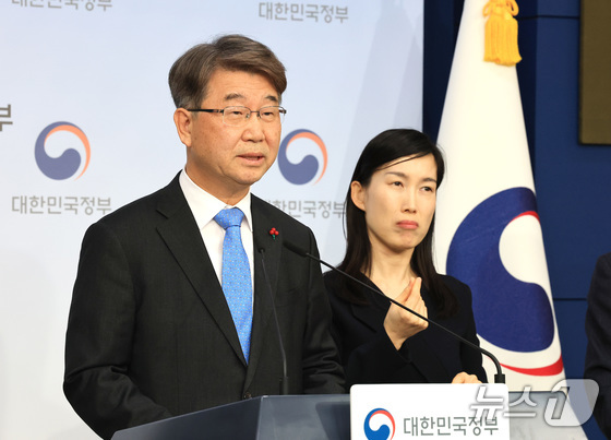 김지형 경제사회노동위원회 위원장이 13일 서울 종로구 정부서울청사 별관 브리핑실에서 고용노동부-경제사회노동위원회-중앙노동위원회 정책간담회 사후 브리핑을 하고 있다. 20…