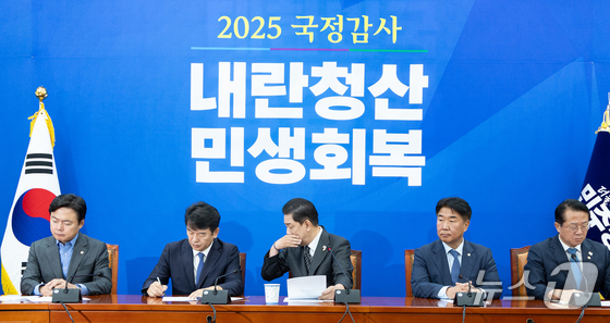 김병기 더불어민주당 원내대표가 일 서울 여의도 국회에서 열린 국정감사 기자간담회에서 기침하고 있다. ../뉴스 News 이승배 기자…
