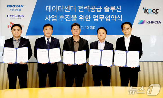 두산퓨얼셀과 한국수소연료전지산업협회, 한국데이터센터연합회, SK에코플랜트, 효성중공업은 10일 '데이터센터 전력공급 설루션 사업 추진'을 위한 업무협약을 체결했다. …