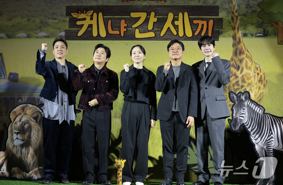 은지원왼쪽부터과 이수근, 김예슬 PD, 나영석 PD, 규현이 25일 오전 서울 용산구 CGV용산아이파크몰에서 열린 넷플릭스 예능 '케냐 간 세끼(…