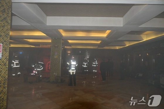 15일 오후 7시 22분쯤 서울 용산구 소재 한 찜질방에서 화재가 발생해 소방 당국이 불을 진압하고 있다. 2025.11.16 자료제공: 용산소방서…