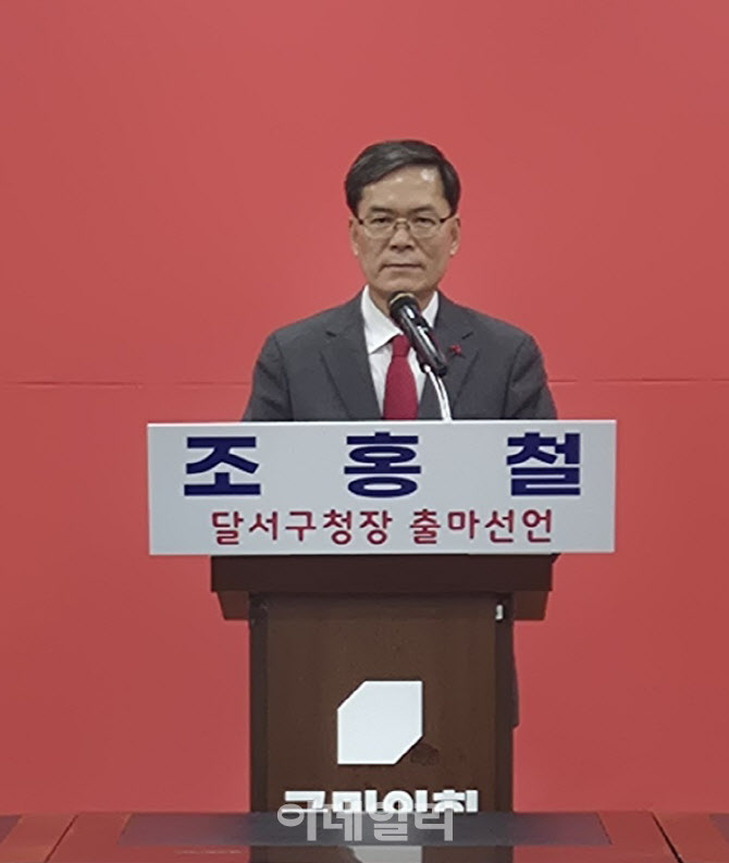 [대구=이데일리 홍석천 기자] 조홍철 국민의힘 대구시당 부위원장이 오는 6월 지방선거에서 달서구청장 후보 출마를 공식 선언했다. 조 부위원장은 22일 국민의힘 대구시당에서 기자회견