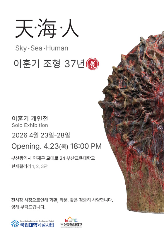 이훈기 '천·해·인'天·海·人전 포스터 한새갤러리 제공현대도자의 틀을 깨고 독창적 조형 세계를 구축해 온 이훈기 작가의 개인전…