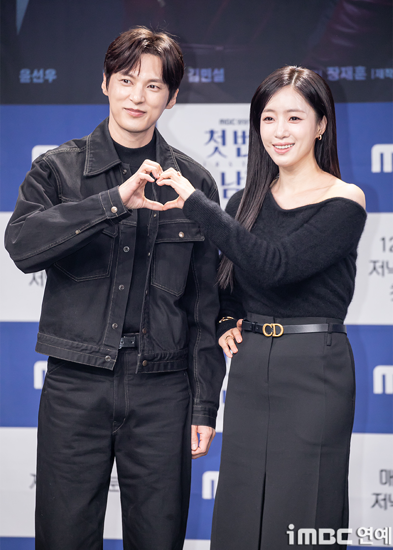 배우 윤선우 함은정이 10일 오전 서울 상암MBC 신사옥 골든마우스홀에서 열린 MBC 새 일일드라마 ‘첫 번째 남자’ 제작발표회에 참석해 포즈를 취하고 있다. ‘첫 번째 남자’는