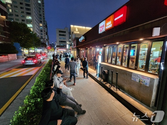 일 서울시 강남구 삼성동의 치킨 가게 앞에서 손님 명이 대기하고 있다. 이곳은 전날 젠슨 황 엔비디아 최고경영자CEO와 이재용 삼성전자 회장, …
