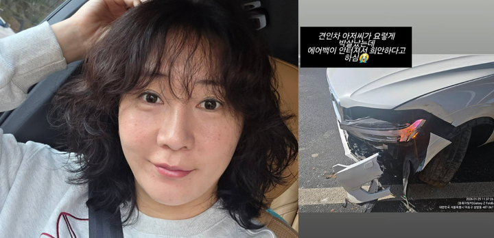 (MHN 김소영 기자) 개그우먼 허안나가 갑작스러운 교통사고를 당해 팬들의 걱정을 샀다. 29일 허안나는 자신의 SNS에 "앞에 차 급정거해서 피하려다 가로수 박았다"며 "액땜인가