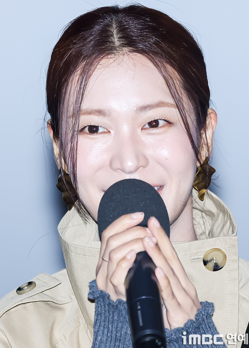 배우 정유진이 14일 오후 서울 왕십리CGV에서 열린 영화 ‘휴민트’ 개봉주 무대인사에 참석해 관객과 소통하고 있다. 이날 ‘휴민트’ 개봉주 무대인사에는 류승완 감독을 비롯해 조인