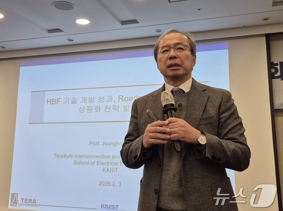 국내 인공지능AI 반도체 분야 석학인 김정호 한국과학기술원KAIST 교수가 3일 서울 중구 프레스센터에서 열린 'HBF 기술 개발 성…