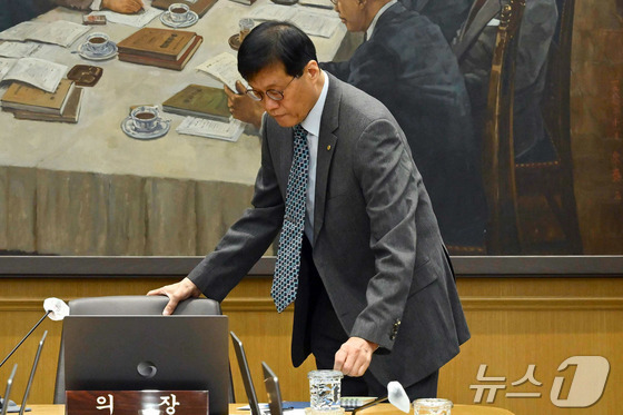 이창용 한국은행 총재가 27일 서울 중구 한국은행에서 열린 금융통화위원회 본회의에 참석하고 있다. 공동취재 2025.11.27/뉴스1 Ne…