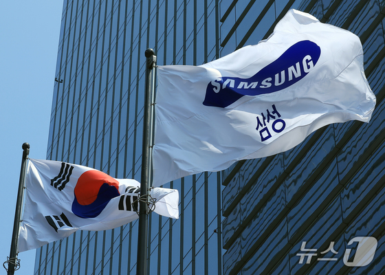 서울 서초구 삼성전자 서초사옥에 삼성 깃발이 바람에 휘날리고 있다. /뉴스 News 박정호 기자삼성전자가 올 분기 …