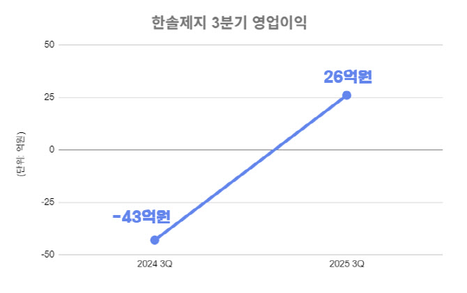 한솔제지, 3분기 영업익 26억원…전년比 흑자전환