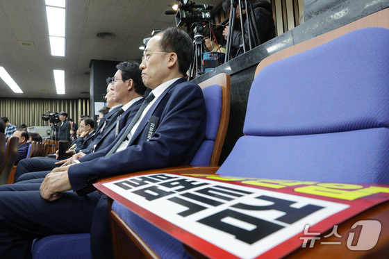 구속영장이 청구된 추경호 국민의힘 의원이 4일 서울 여의도 국회에서 열린 의원총회에 참석하고 있다. 2025.11.4/뉴스1 News1 신웅수 기자국…