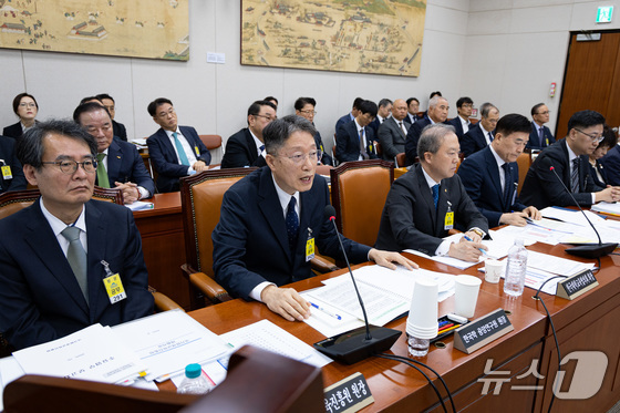 김낙년 한국학중앙연구원장이 일 서울 여의도 국회에서 열린 교육위원회의 한국고전번역원 등에 대한 국정감사에서 의원 질의에 답하고 있다. ../뉴스 c…