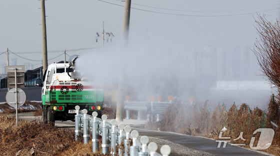 아프리카돼지열병ASF이 잇따라 발생하며 방역에 비상이 걸린 가운데 26일 경기 안성시 미양면 일대에서 안성시 관계자가 집중 소독 및 방역 작업을 하고 …