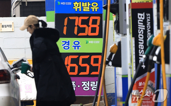 = 서울시내의 한 주유소의 모습. 2025.12.24/뉴스1 News1 이호윤 기자주유소 기름값이 국제 석유제품 가격 하락 영향으로 다음 주에도 하락…