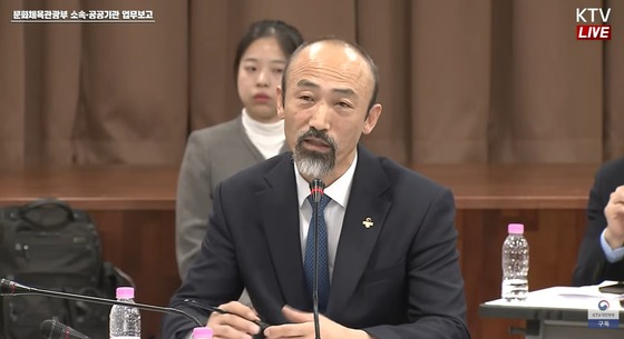 정진완 대한장애인체육회장이 13일 서울 종로구 콘텐츠코리아랩CKL 기업지원센터에서 열린 문화체육관광부 산하 기관 업무보고에 참석해 발언하고 있다. …