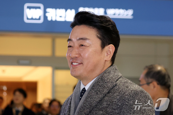 강훈식 대통령비서실장이 지난 26일 오전 인천공항에서 잠수함 사업 등 방산협력 논의를 위해 캐나다로 출국하고 있다. 2026.1.26/뉴스1 News1 김명…