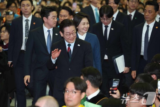 이재명 대통령이 20일 대전 유성구 한국과학기술원KAIST에서 열린 학위수여식에 입장하고 있다. 2026.2.20 뉴스1 이재명 기자…