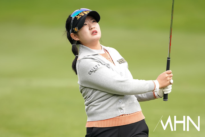 한지원이 30일 열린 S-OIL 챔피언십 1라운드에서 샷을 하고 있다. (MHN 제주, 김인오 기자) 이제는 진짜 생존 경쟁이다. 아니, 전쟁이다. 샷 하나 하나에 희비가 엇갈린다