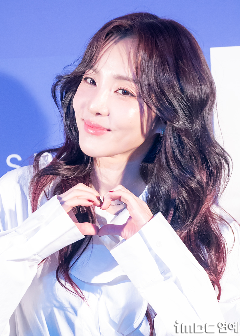 가수 산다라박(2NE1)이 28일 오후 서울 성수동에 위치한 한 팝업스토어 행사장에서 열린 홈케어 리프팅 브랜드 출시 기념 행사에 참석해 포즈를 취하고 있다. 이날 산다라박은 브릿