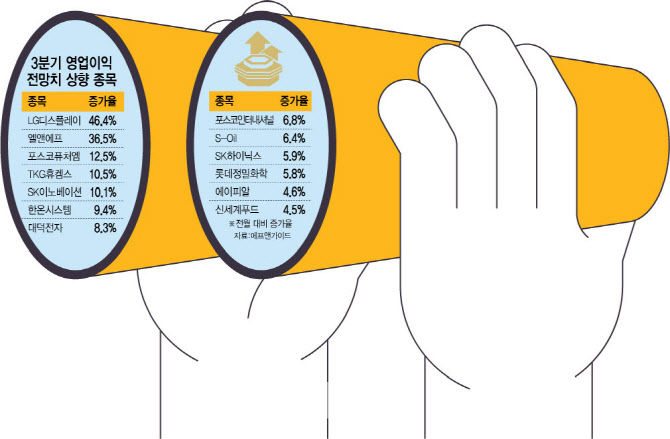[이데일리 김경은 기자] 어닝 시즌이 돌입한 가운데 코스피 주요 기업들의 3분기 실적이 회복세를 보이며 시장의 기대감을 높이고 있다. 증권가에서는 업종별로 뚜렷한 실적 차별화가 나
