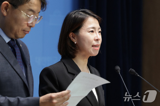 김한나 더불어민주당 서울시당 윤리심판위원이 일 서울 여의도 국회 소통관에서 김경 시의원 관련 조사 결과를 발표하고 있다. 민주당 서울시당은 내년 지방선거 경선에서 특정…