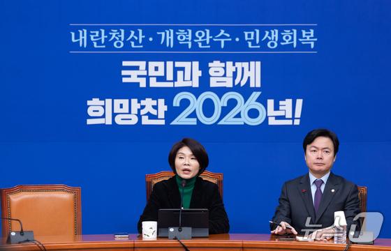 한정애 더불어민주당 정책위의장이 1일 서울 여의도 국회에서 현안 관련 기자간담회를 하고 있다. 2026.2.1/뉴스1 News1 이승배 기자한정애 더…