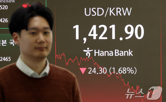 28일 오후 서울 중구 하나은행 딜링룸 전광판에 종가 시황이 나타나고 있다.. 2026.1.28/뉴스1 News1 김진환 기자올해 원·달러 시장 선도…