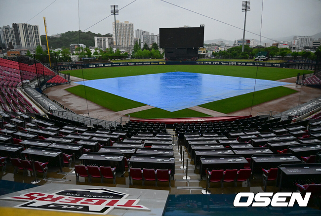 [OSEN=광주, 이선호 기자] 야속한 가을비다. 3일 광주-기아 챔피언스필드에서 열릴 예정이던 2025 프로야구 삼성 라이온즈와 KIA 타이거즈의 시즌 최종전이 우천으로 취소됐다
