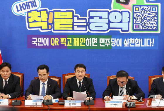한병도 더불어민주당 원내대표가 9일 서울 여의도 국회에서 열린 착!붙 공약 프로젝트 4호·5호 공약 발표에서 인사말을 하고 있다. 2026.4.9 뉴스1 김…