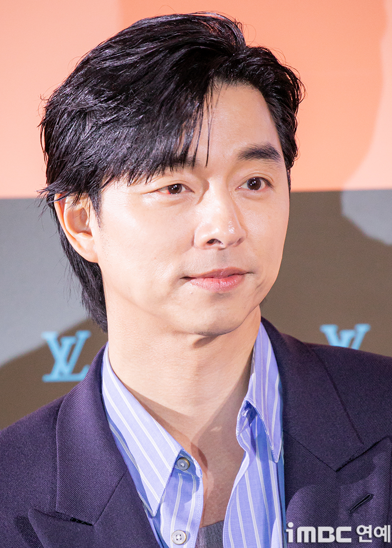 배우 공유가 3일 오후 서울 중구에 위치한 한 백화점 본점에서 열린 글로벌 패션 브랜드 오프닝 이벤트 행사에 참석해 포즈를 취하고 있다. 이날 공유는 '오징어게임' 딱지맨 패션을