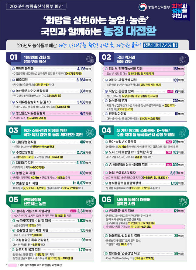내년 농식품부 예산 20.1조…농어촌 기본소득 10개군으로 확대