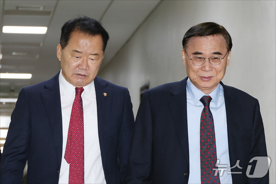 신성범 국회 정보위원장과 이종석 국가정보원장이 일 서울 여의도 국회에서 열린 제회 국회정기회 정보위원회 제차 전체회의에 앞서 정보위원장실로 …