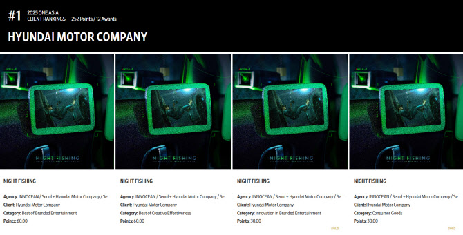 [이데일리 이윤화 기자] 현대자동차그룹이 혁신적인 아이디어와 콘텐츠로 아시아의 권위 있는 광고제에서 브랜드 경쟁력을 입증했다. 현대차그룹은 현대자동차와 종합광고대행사 이노션이 아시