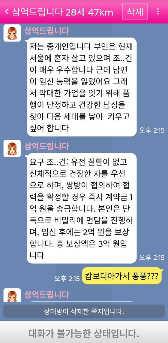 "남편 대신 임신시켜 주면 3억원 주겠다"…수상한 채팅, 한국에도 떴다