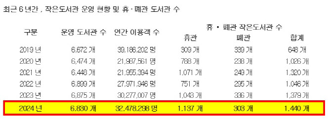 작은도서관 5곳 중 1곳 문닫았다…尹정부 예산삭감 탓