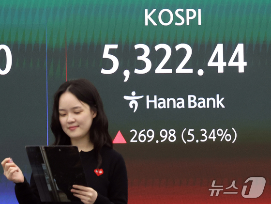 코스피 8%대 급등 5500 눈앞…삼성전자 12% SK하이닉스 10% [장중시황]