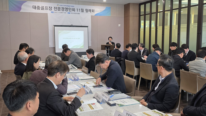 18일 열린 한국대중골프장협회 11월 전문경영인회에서 배은지 임업연구사가 강연을 하고 있다. (MHN 김인오 기자) 한국대중골프장협회(회장 우정석, 이하 협회)는 대중형 골프장 3