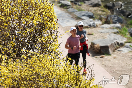 서울 낮 최고 기온이 19도까지 올라가 포근한 날씨가 이어지는 25일 서울 종로구 청계천을 찾은 시민들이 러닝을 하고 있다. 2026.3.25 뉴스1 임지훈…