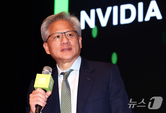 젠슨 황 엔비디아 최고경영자CEO가 일 오후 경북 경주예술의전당에서 기자간담회를 하고 있다. ../뉴스 News 김민…